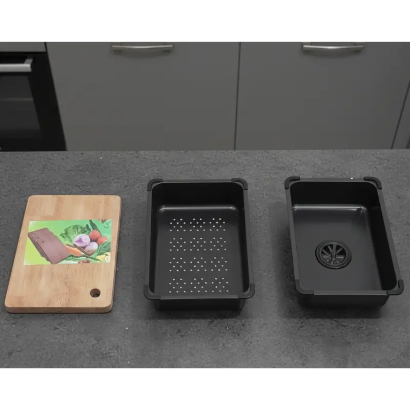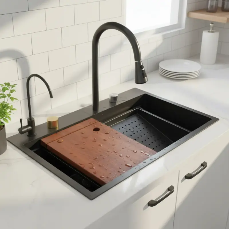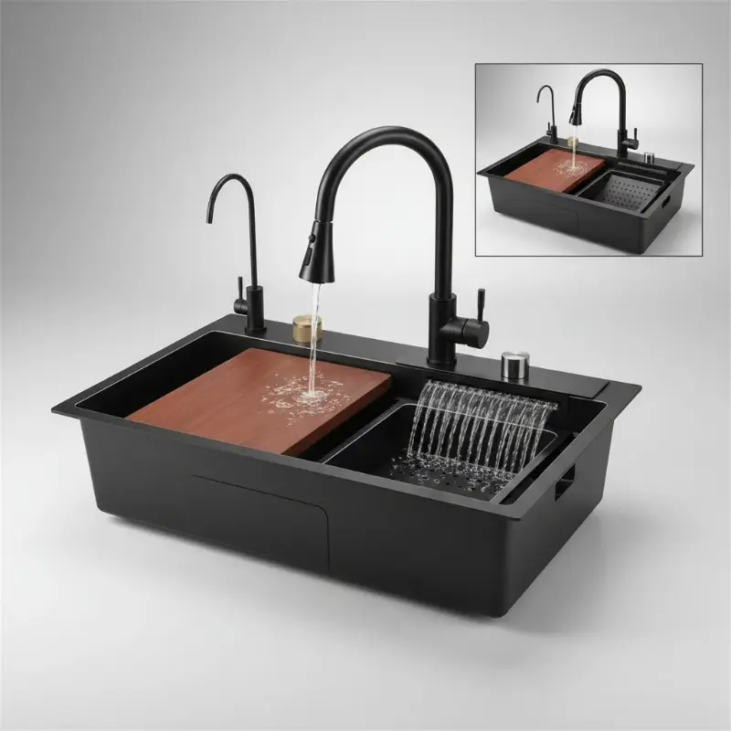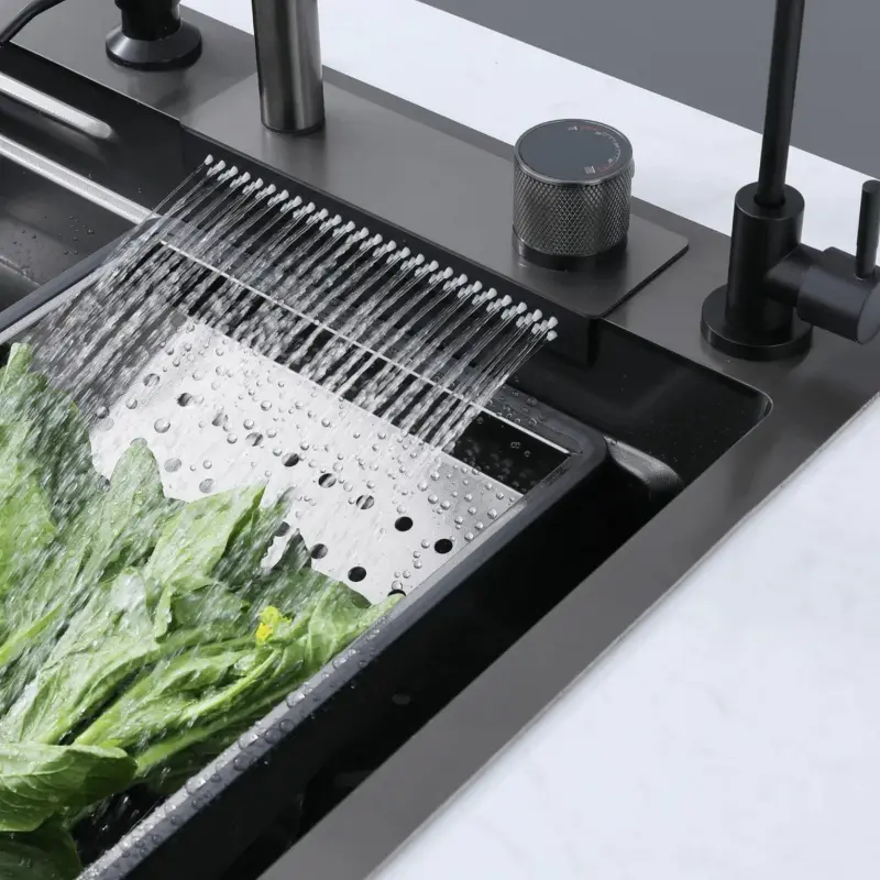 La nueva e increíble Bacha Inteligente Multifunción combina diseño moderno con máxima practicidad: lavado eficiente, drenaje rápido y accesorios integrados que optimizan cada movimiento. Elegante, resistente y pensada para hacerte la vida más fácil.