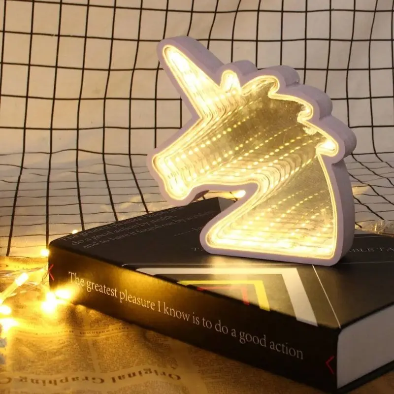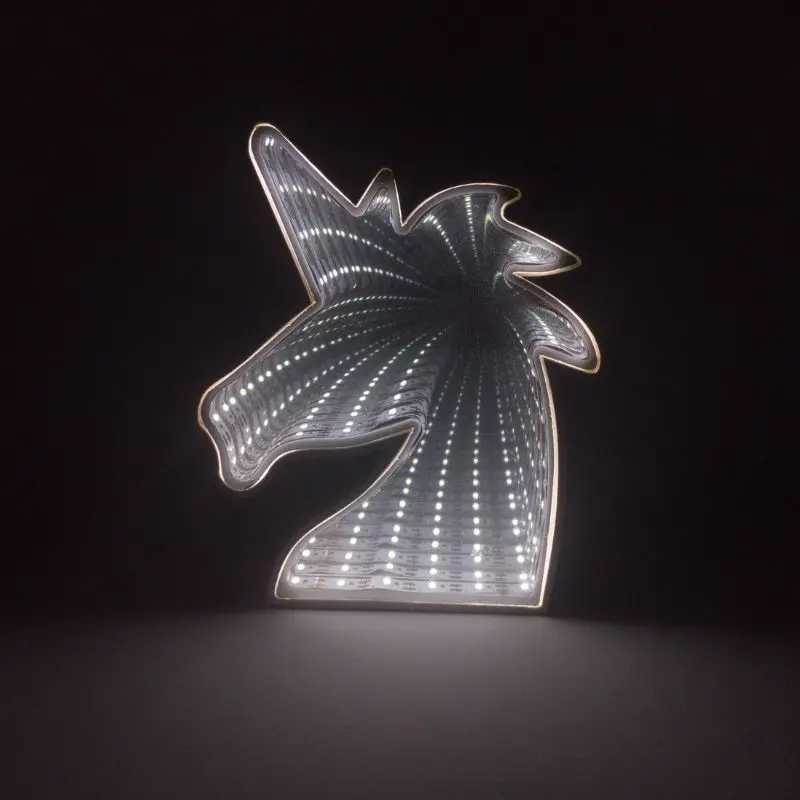 La Lámpara LED Unicornio con Efecto Infinito Blanco Espejado es ese toque wow que ilumina, decora y encanta al mismo tiempo. Al encenderla, su efecto infinito crea una profundidad luminosa hipnotizante que hace que el unicornio cobre vida y llene el espacio de fantasía.