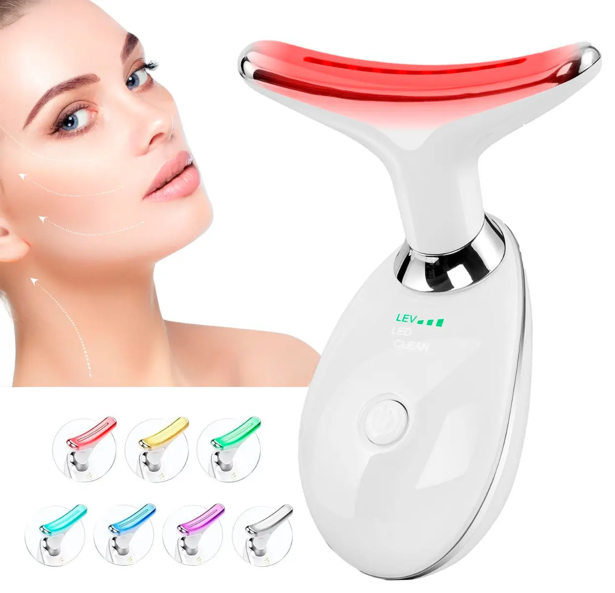 El nuevo e innovador Masajeador Facial de Cara y Cuello es ese pequeño lujo diario que tu piel estaba esperando: Elimina marcas y pliegues. Modelo de 7 modos de luz, cada uno asociado a diferentes objetivos de piel. Carga por USB. Color Blanco.