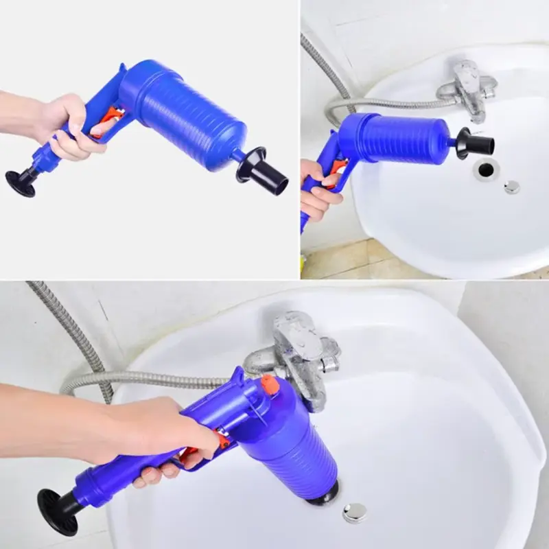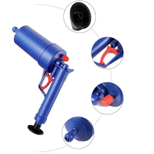 La Pistola de Aire Comprimido Destapa Cañerías elimina obstrucciones en segundos con un potente golpe de aire, sin químicos ni esfuerzo. Ideal para cocina, baño o lavadero, es rápida, segura y reutilizable.