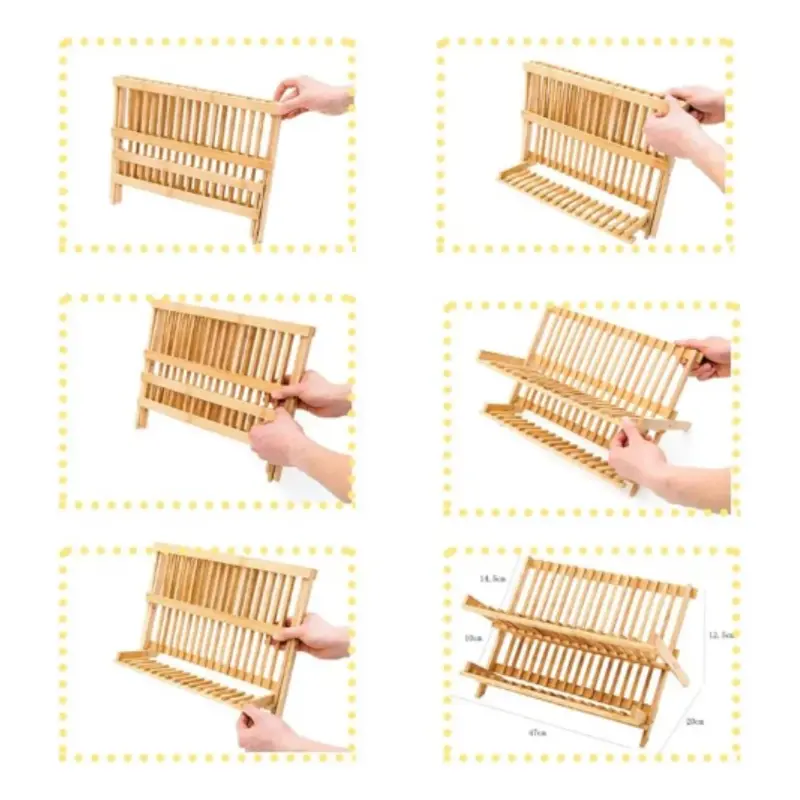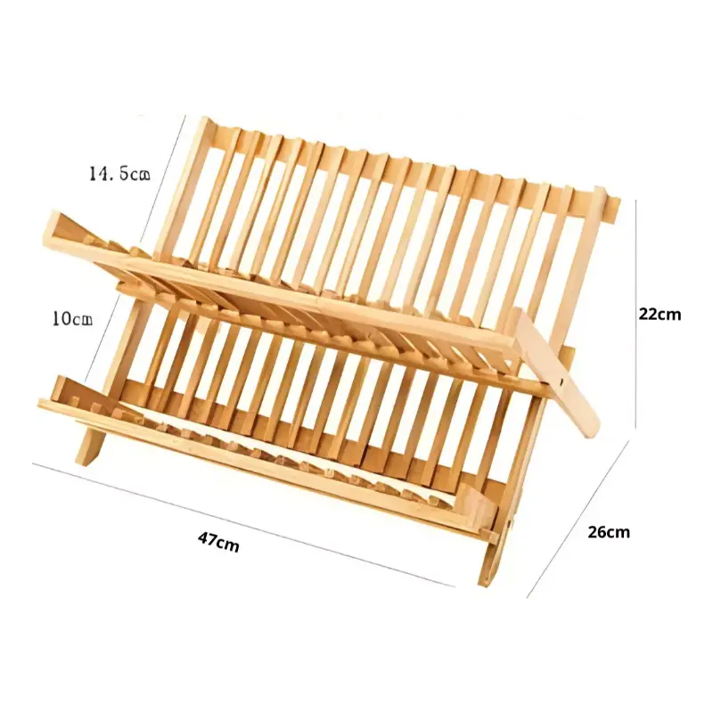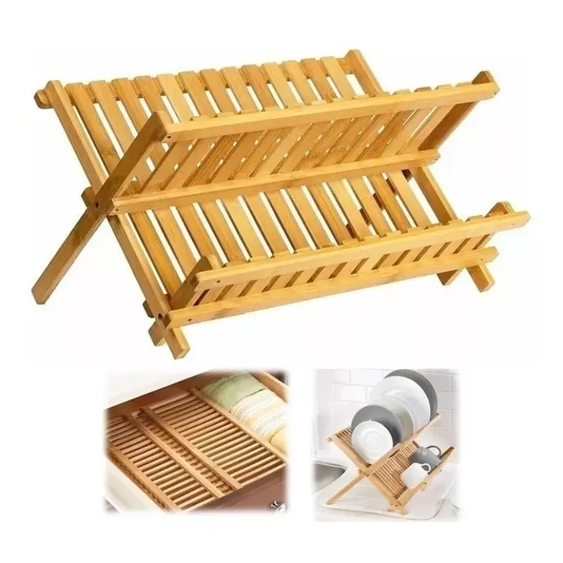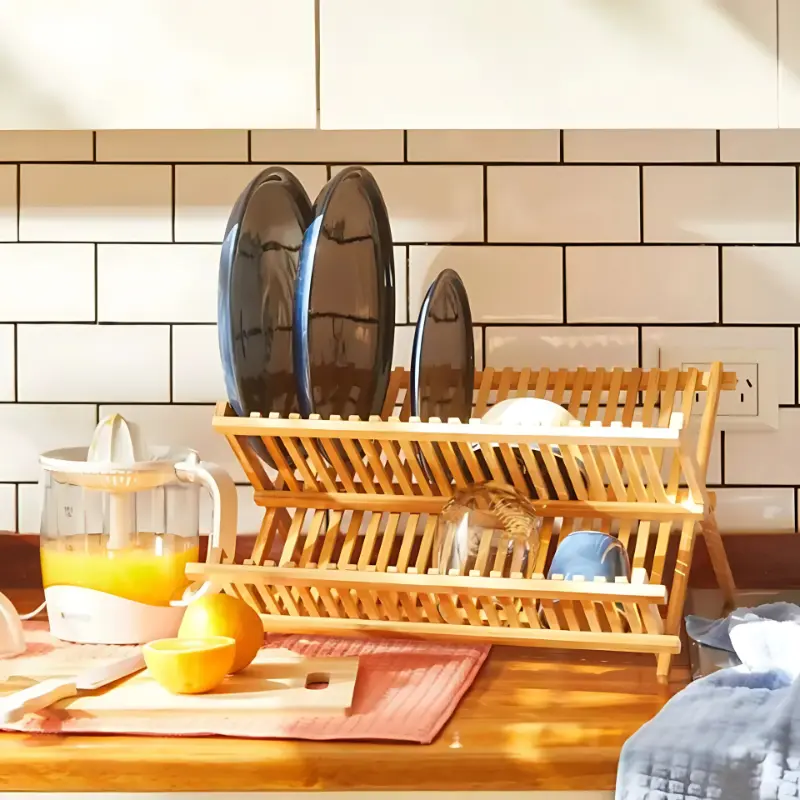 Este práctico Secaplatos de Bambú combina diseño cálido y funcionalidad inteligente. Resistente al agua, liviano y fácil de guardar, mantiene tus platos secos y tu cocina siempre prolija.